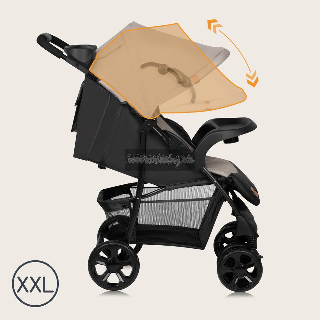 XXL stříška chrání vaše dítě před sluncem, deštěm a větrem a nastavitelná opěrka zad umožňuje polohování polohy ležícího dítěte, což usnadňuje usínání. Kočárek je ideální na procházky, rychlé nákupy a vybavování věcí v městě. Je velmi lehký, takže se snadno přenáší po schodech nahoru i dolů, když není k dispozici výtah. Košík, taška a organizér abyste měli své základní věci vždy po ruce.