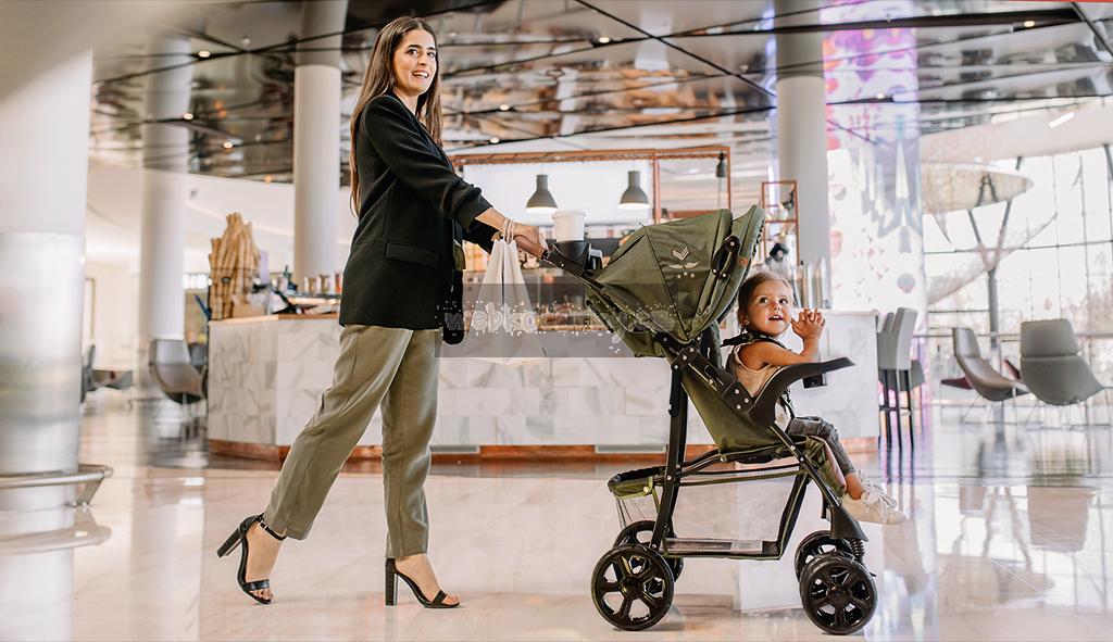 - Praktická řešení pro zlepšení péče o dítě: nastavitelná opěrka zad usnadňující usínání; taška, prostorný košík a organizér.