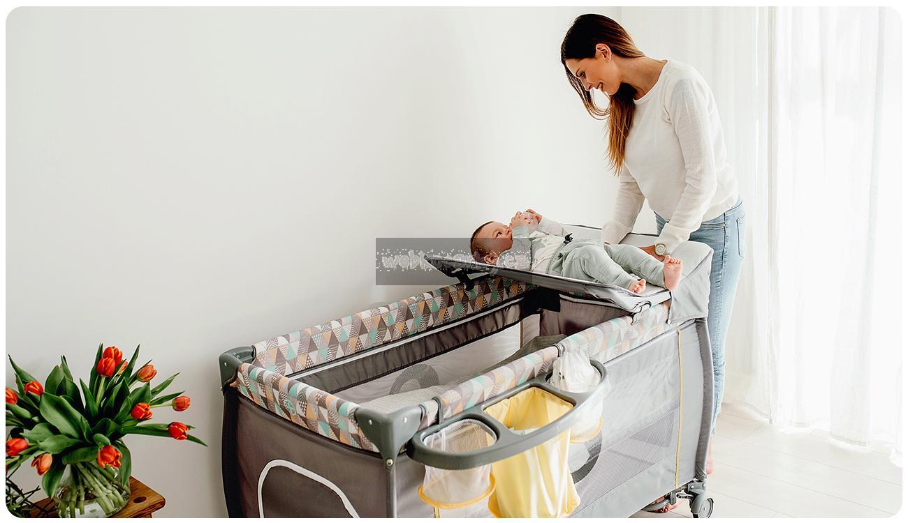 Zvednuté okraje přebalovacího stolu zajišťují bezpeřnost dítěte, zatímco měkké polstrování poskytuje neuvěřitelné pohodlí. Přebalovací stůl vyrobený z materiálu odpuzujícího nečistoty byl také vybaven dvěma funkčními kapsami.