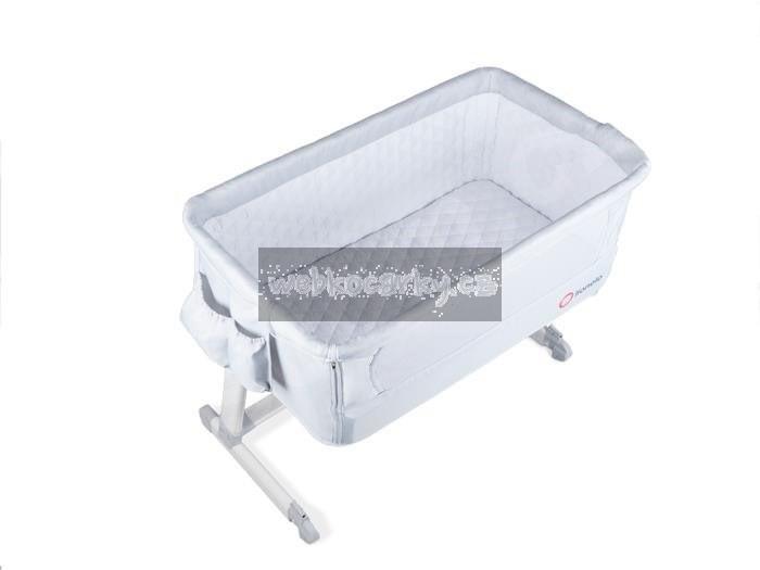Sklopná boční stěna - Dětská postýlka s neotevřenou stěnou může být použita jako přistýlka nebo po zvednutí zdi jako dětská postýlka. Odvětrávaná síťovina zajišťuje dostatečnou cirkulaci vzduchu a umožňuje pozorovat vaše dítě.
