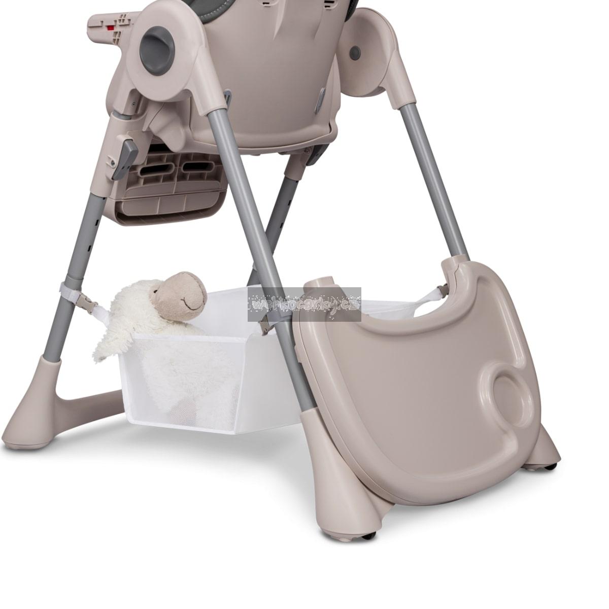 - Polohovatelná jídelní židlička se dá sklopit do různých pozic