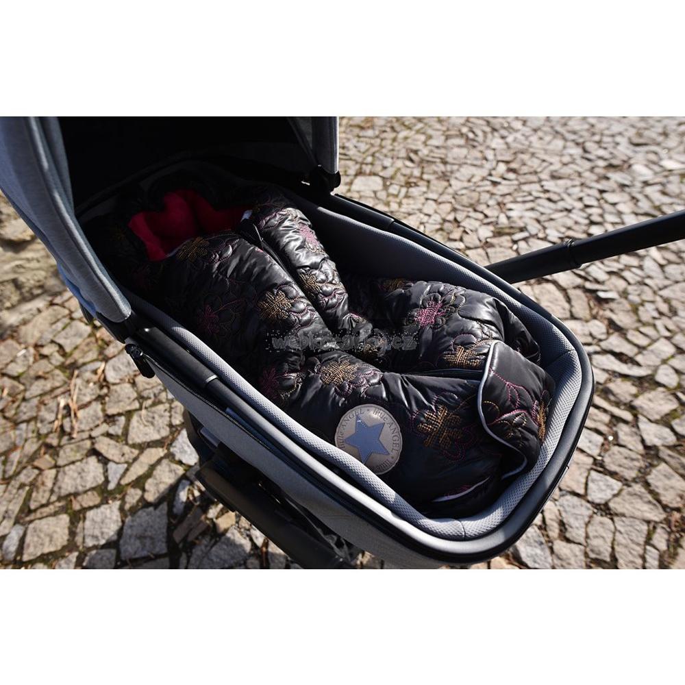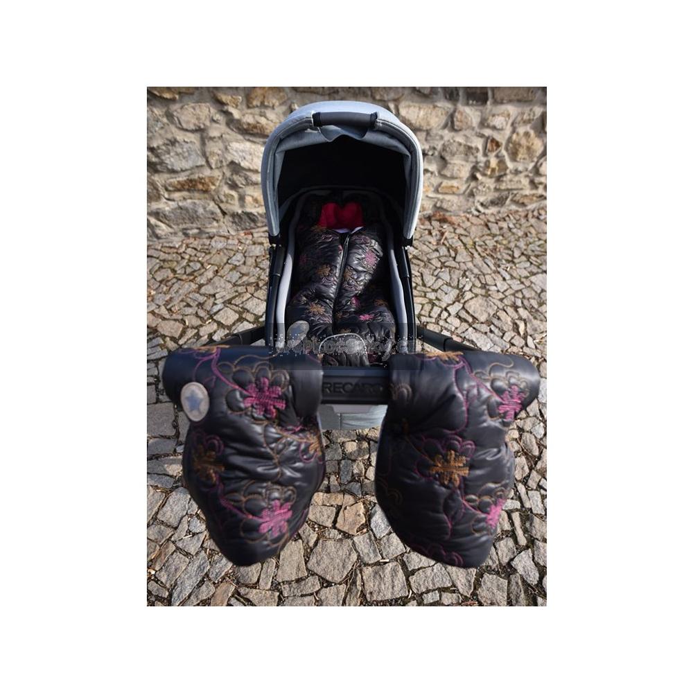 LITTLE ANGEL Fusak Exclusive prošev Mazlík Outlast® 45x90cm,50x100cm černá kytky/růžová