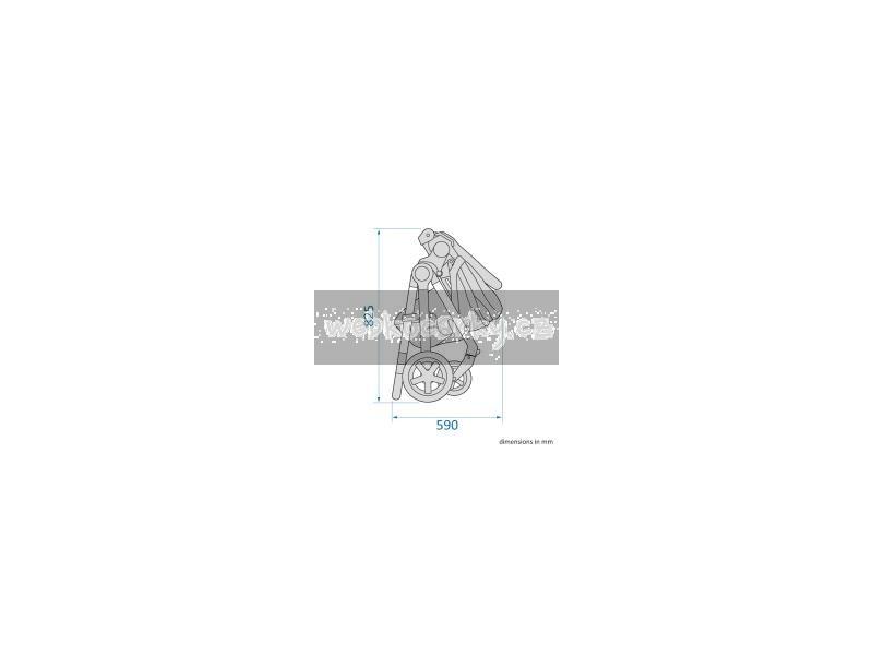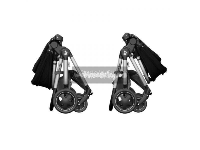 - Po složení do kompaktního tvaru je možné kočárek postavit