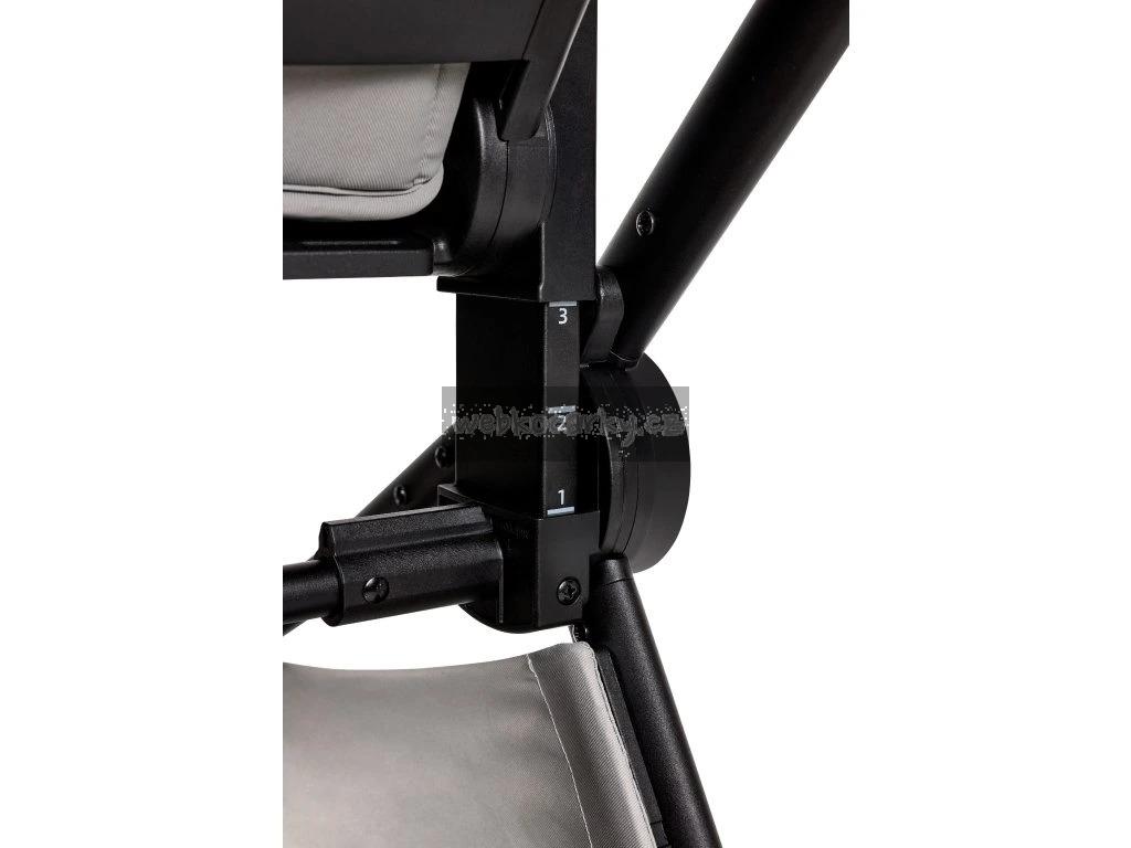 - Výškově nastavitelná teleskopická rukojeť – pro pohodlné ovládání kočárku, a to i pro rodiče různé výšky.