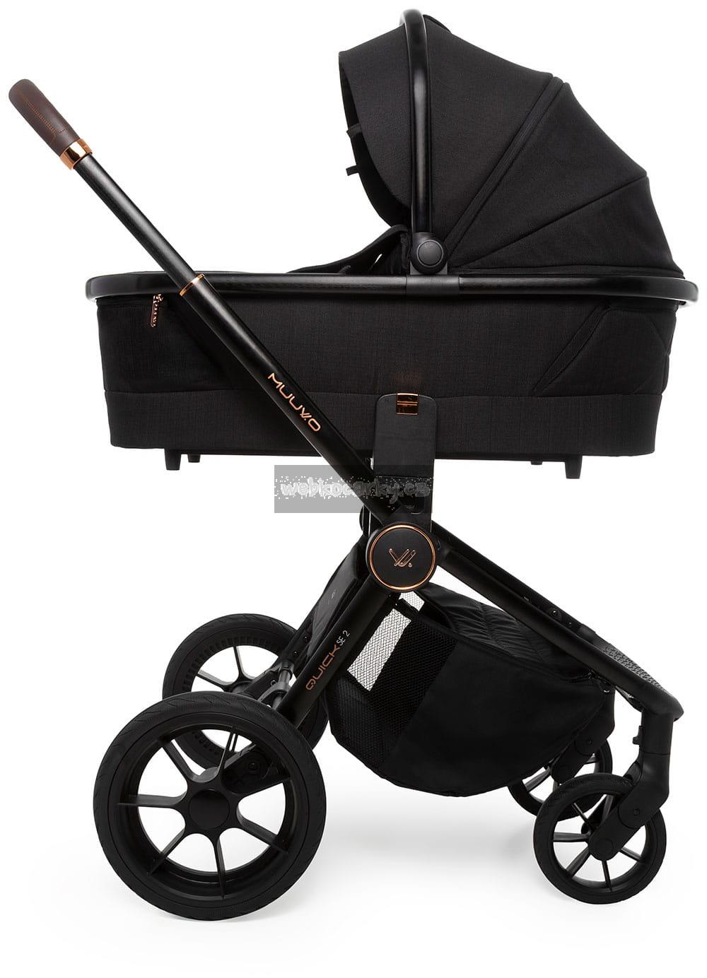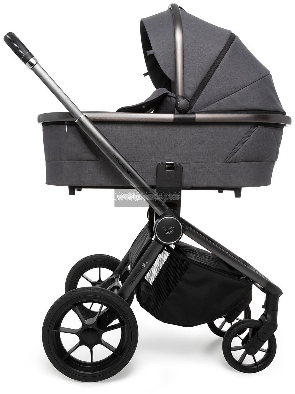 Quick SE je nejexkluzivnější edice nejprodávanějšího kočárku z rodiny MUUVO. Kromě toho, že design kolekce sleduje moderní trendy, Quick SE nabízí řadu vychytávek, která jsou pohodlná pro dítě i rodiče. Inovací je zcela nový systém bezpečnostního pásu. Prostorná hluboká korba, která je ke konstrukci připevněna pomocí zvyšujících adaptérů se systémem paměťových tlačítek, díky nimž lze korbu sundat jednou rukou.