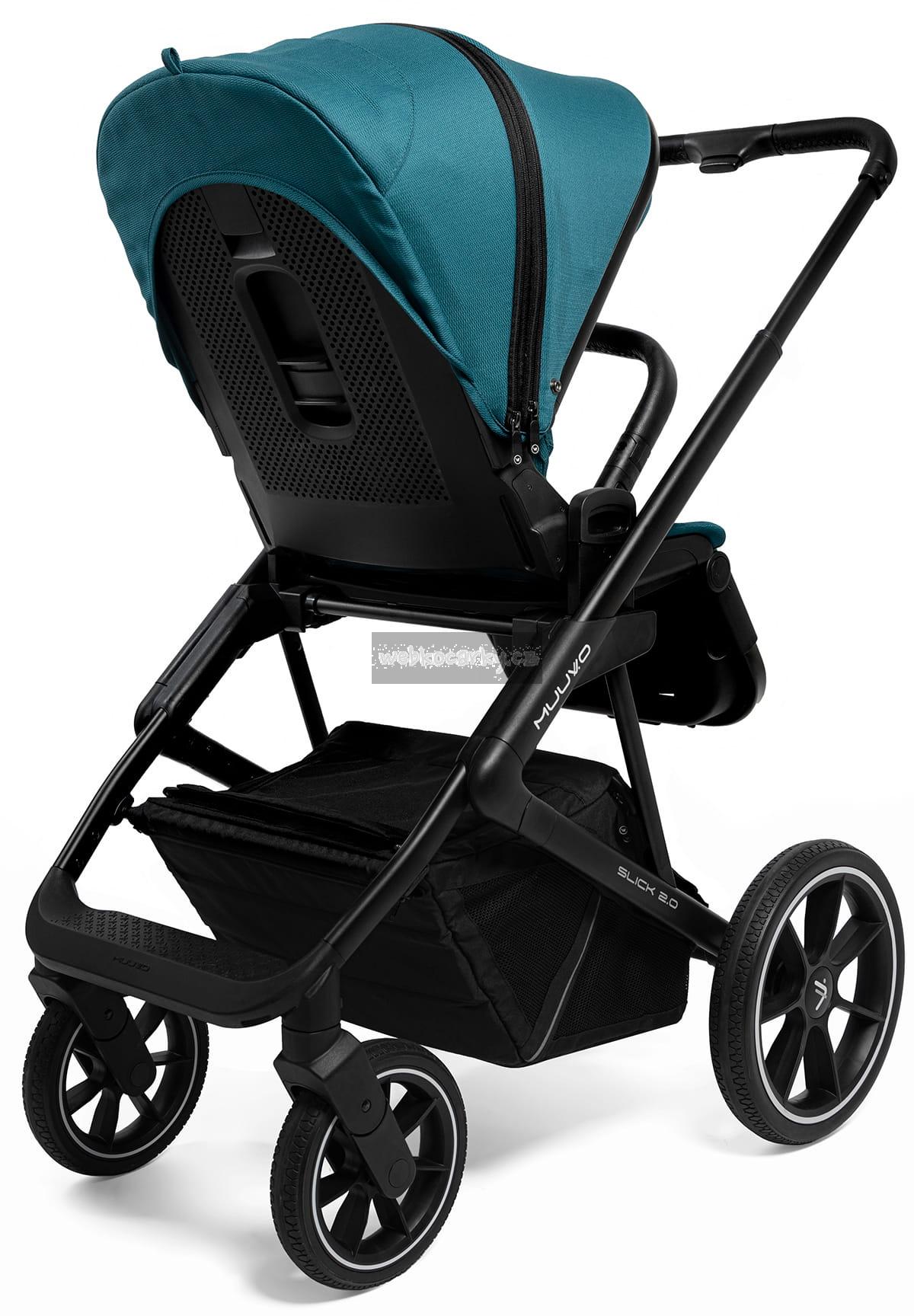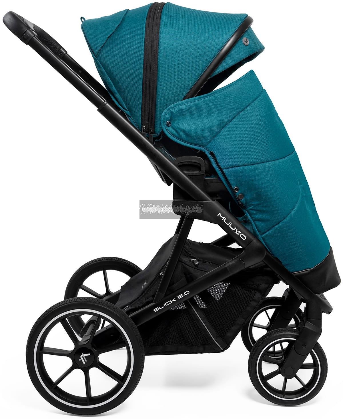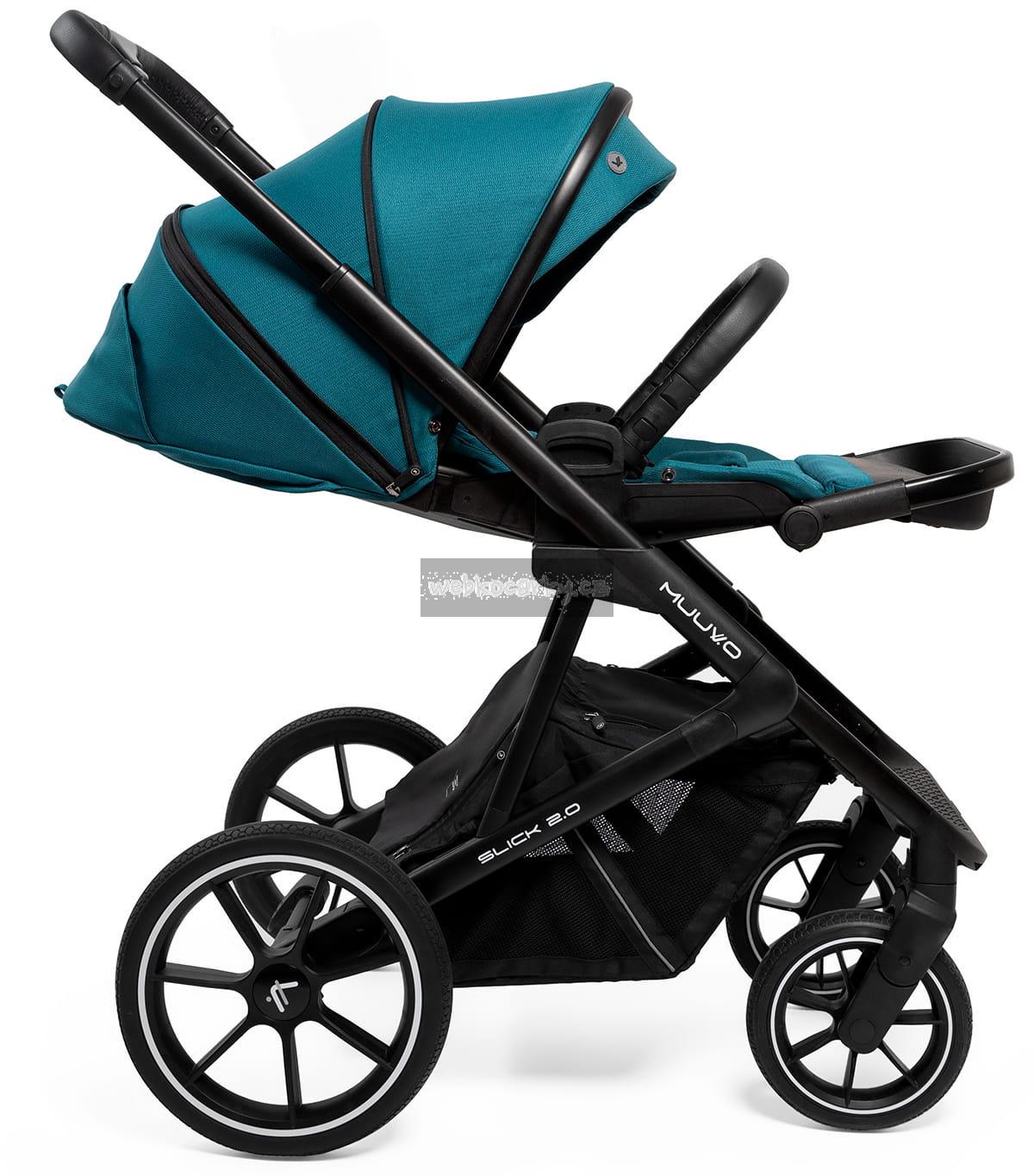 Kočárek Muuvo Slick 2.0 je vybaven všemi nejžádanějšími funkcemi. Nová verze kočárku má víc než kdy předtím. Dá se říci, že hlavní předností kočárku Muuvo Slick 2.0 je dokonalý výběr materiálů. Lehká kola, která se přizpůsobí terénu stejně jako pneumatická kola – ale jsou plně bezúdržbová a odolná proti propíchnutí? Můžete – Muuvo má své patenty na všechno a Slick 2.0 je toho příkladem.