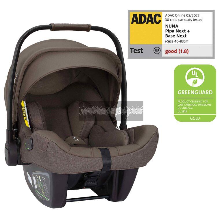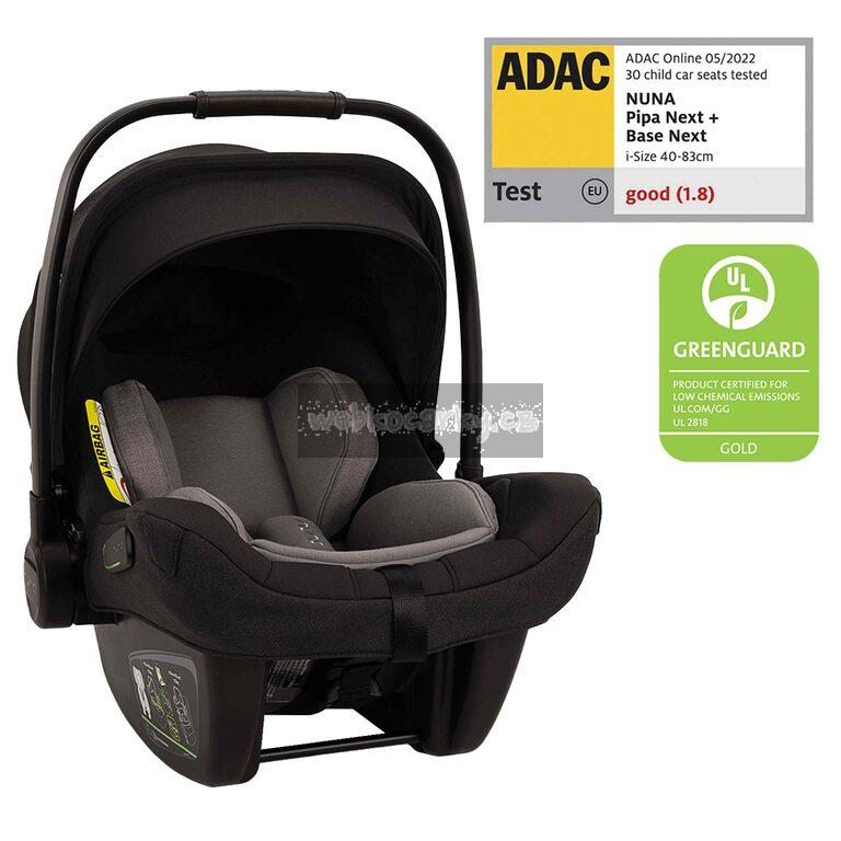 Bezpečná - Pipa Next převyšuje nároky nejpřísnější současné normy i-Size, využívá výplně z patentované paměťové pěny a na rozdíl od jiných lehkých autosedaček ji stále můžete připoutat i pásem vozidla. Po dokoupení báze Nuna Pipa Next Base získáte zcela unikátní automaticky výklopnou boční ochranu. V této kombinaci autosedačka získala nejlepší hodnocení bezpečnosti ze všech testovaných vajíček ve spotřebitelských testech ADAC od roku 2016!