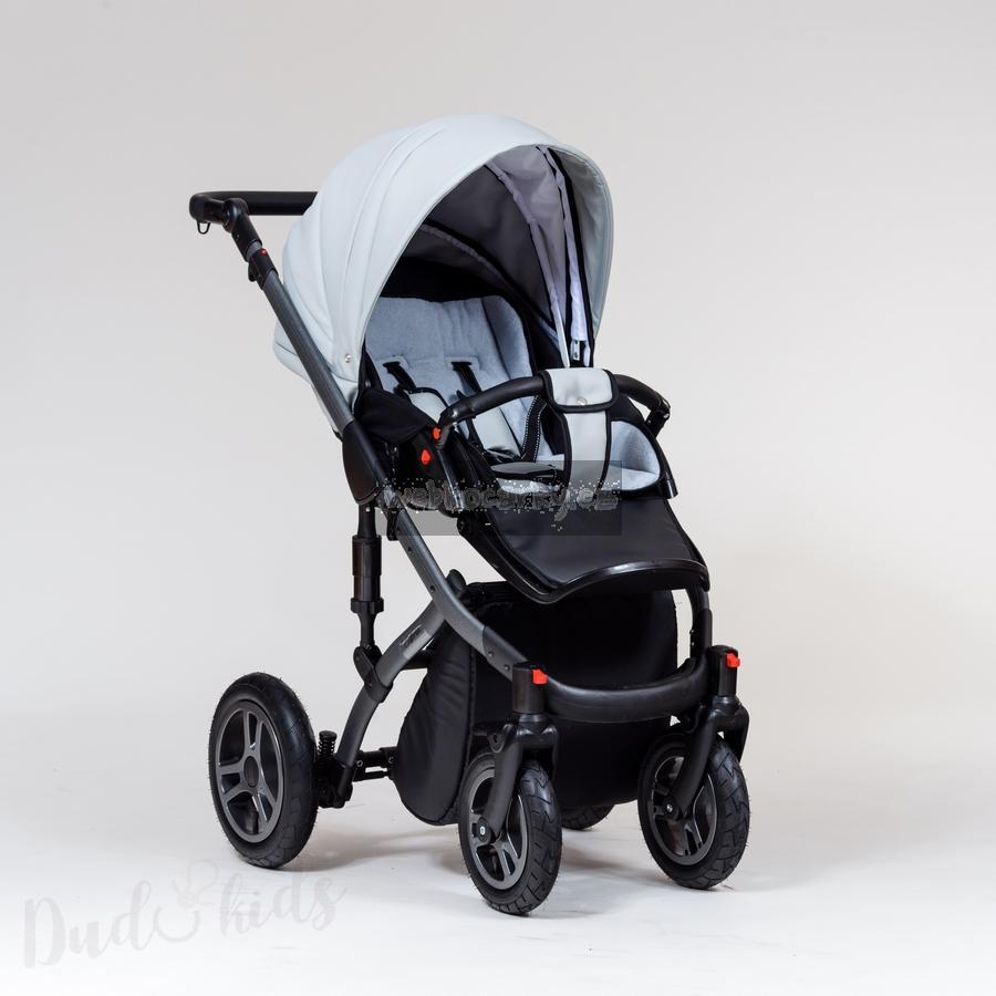 Konstrukce podvozku je vyrobená z hliníku. Kočárek je vybaven čtyřmi nafukovacími nebo gelovými koly. Dvě přední kola jsou aretovací . Tuhost podvozku lze nastavit podle hmotnosti dítěte. Rukojeť je potažená kvalitní eko kůží. Pomoci kloubů si můžete nastavit výšku rukojeti. Při složení podvozku se automaticky zachytí pojistka, díky které se podvozek samovolně nerozloží např. při vkládání do automobilu atd. Prostorný košík si můžete pomoci zipu uzavřít. Kočárek se brzdí centrální nožní brzdou.