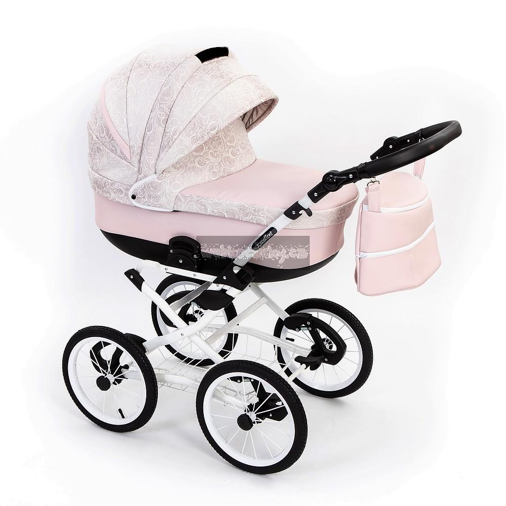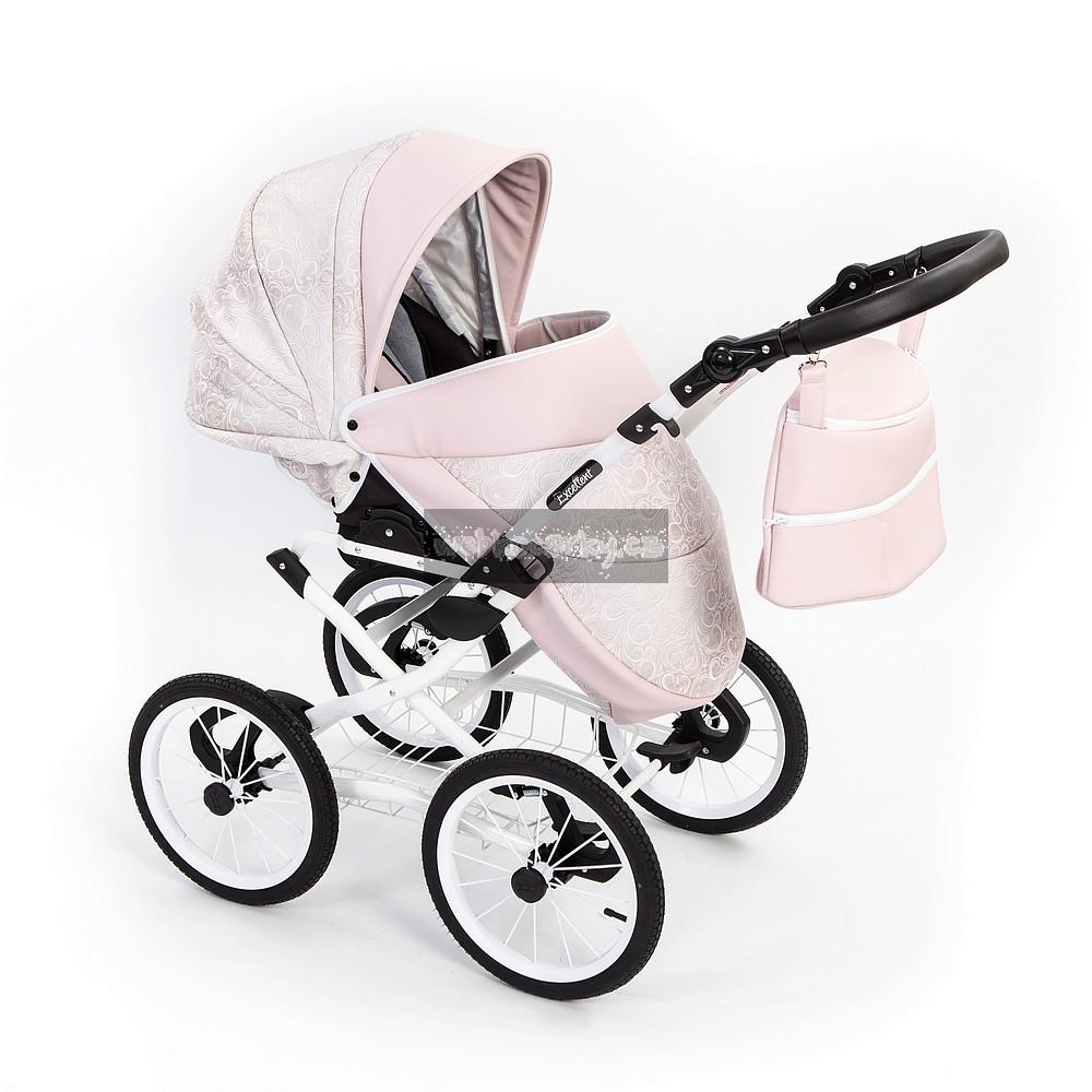 Luxusní stylový retro kočárek Grande má velká drátěná nafukovací kola a měkce odpružený podvozek s důrazem kladeným na funkčnost a bezpečnost. Kola mají kuličková ložeiska a mají průměr 36 cm. Rukojeť je výškově nastavitelná, součástí podvozku je drátěný nákupní košík , kde s klidem můžete dát i těžší nákup.