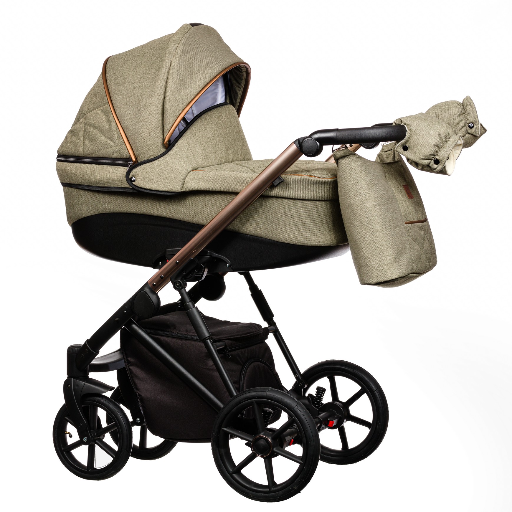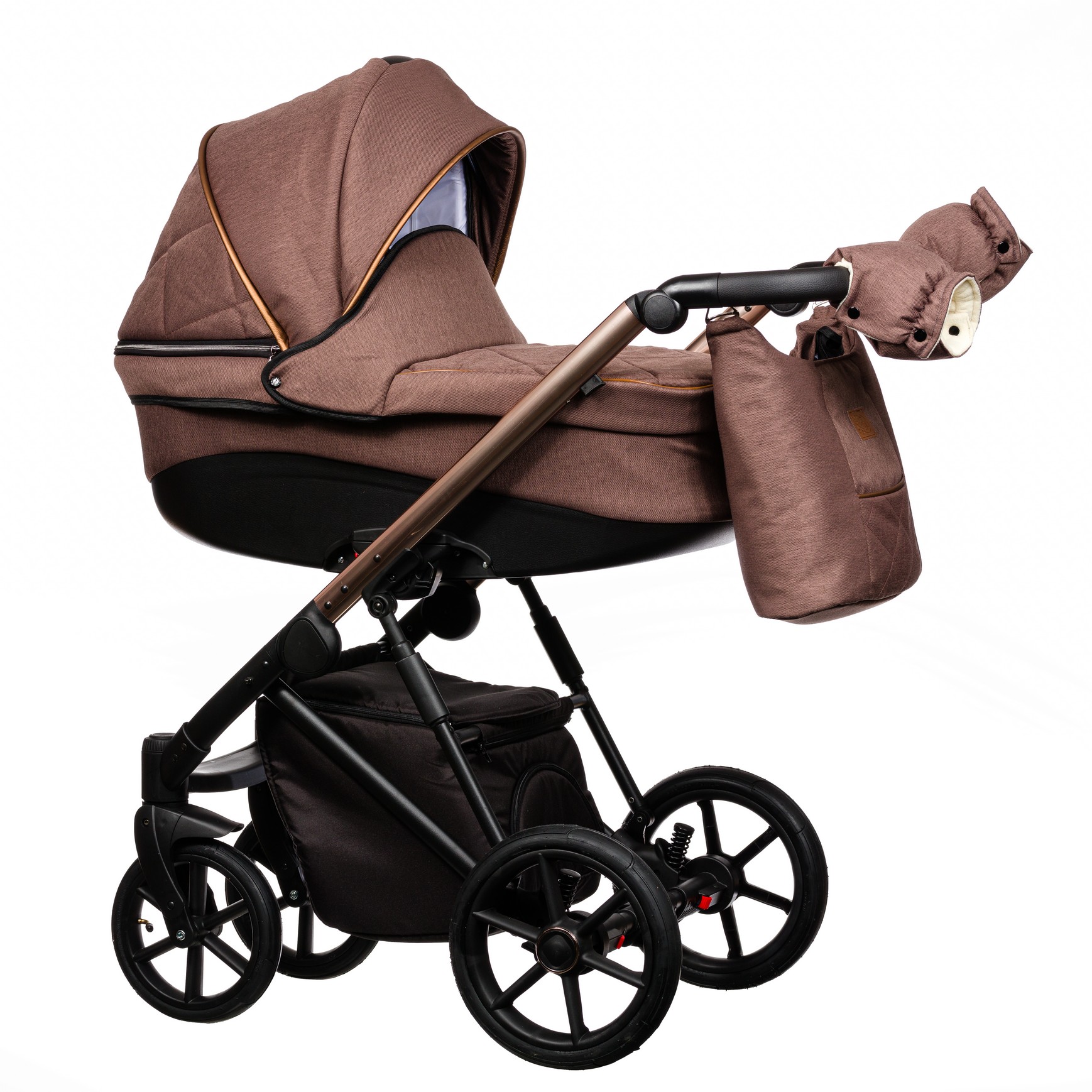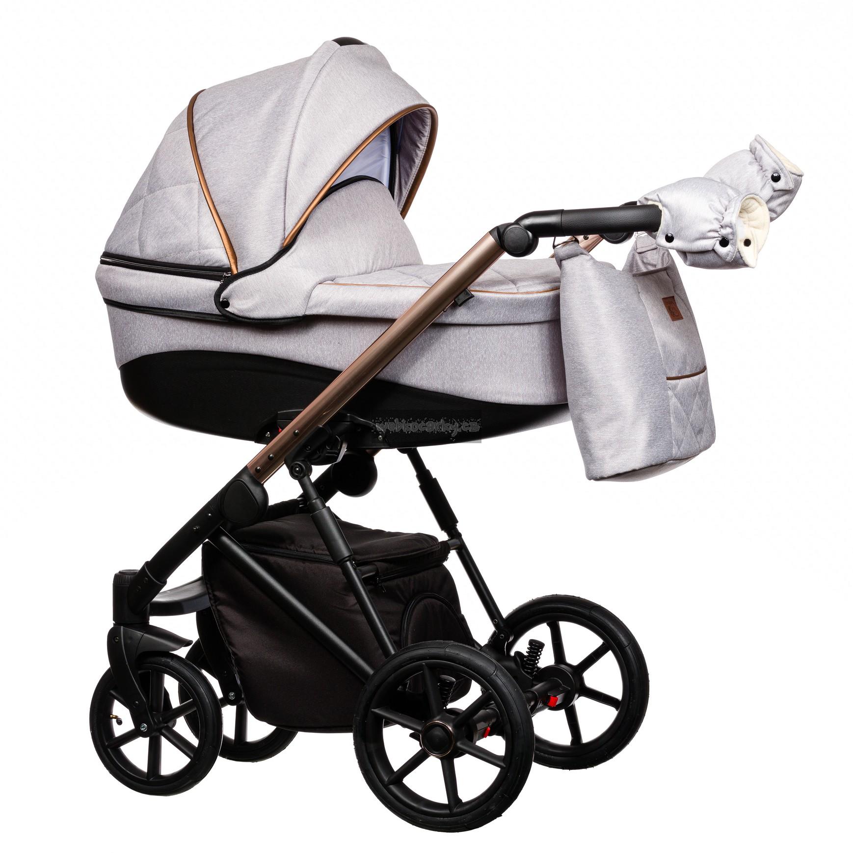 Samozřejmostí je u tohoto luxusního kočárku i velká výbava, kde výrobce nezapoměl dát držák na nápoje, plně vybavenou cestovní tašku pro vše potřebné, či vyteplené rukavice pro zimní období, které lze použít i později třeba i na tzv.golfové hole. :)