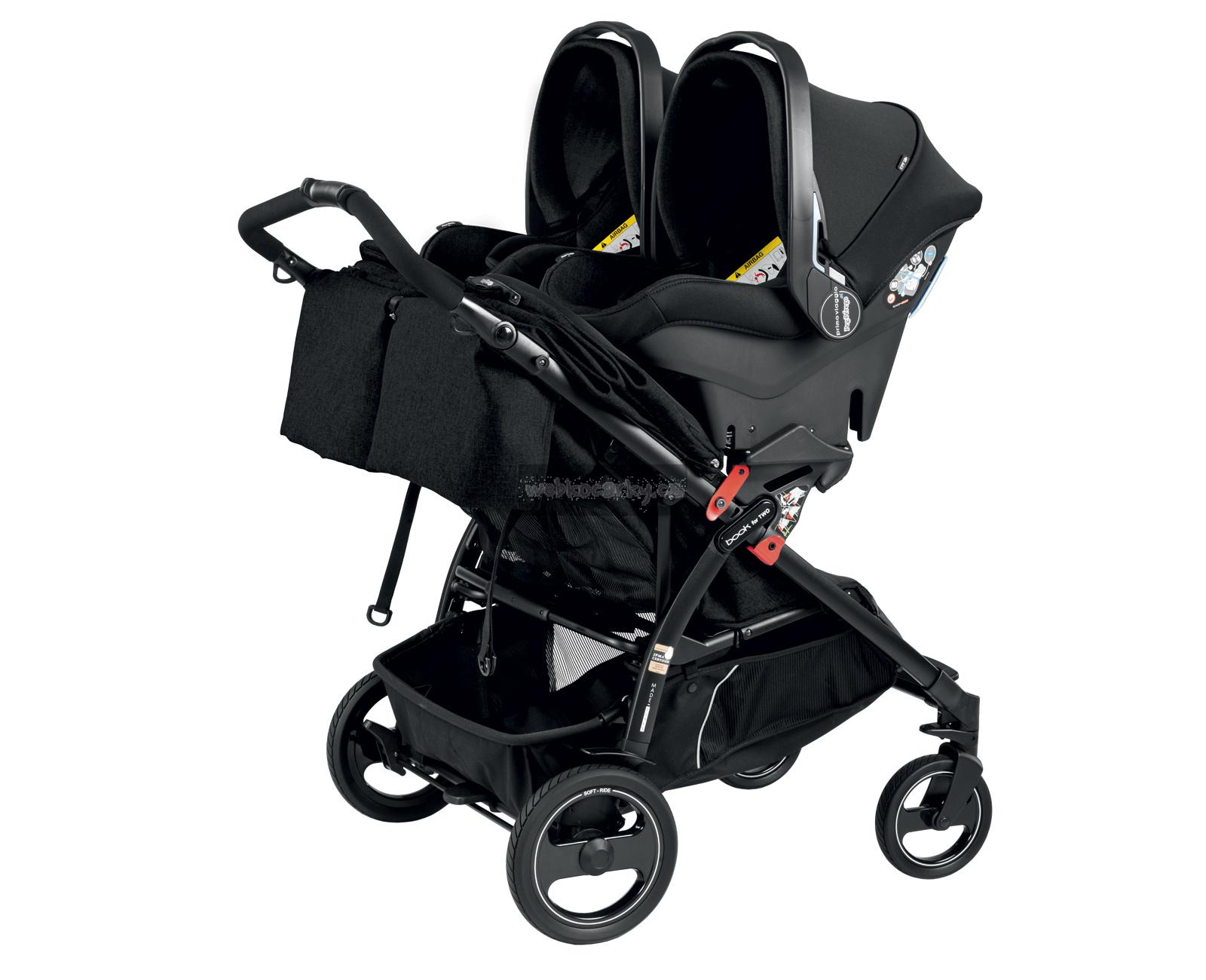 Kočárek Book For Two je kompatibilní s dětskými autosedačkami Primo Viaggio a korbičkami porte-enfant.