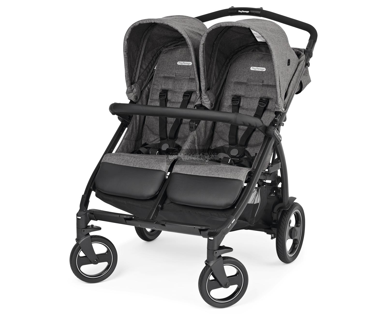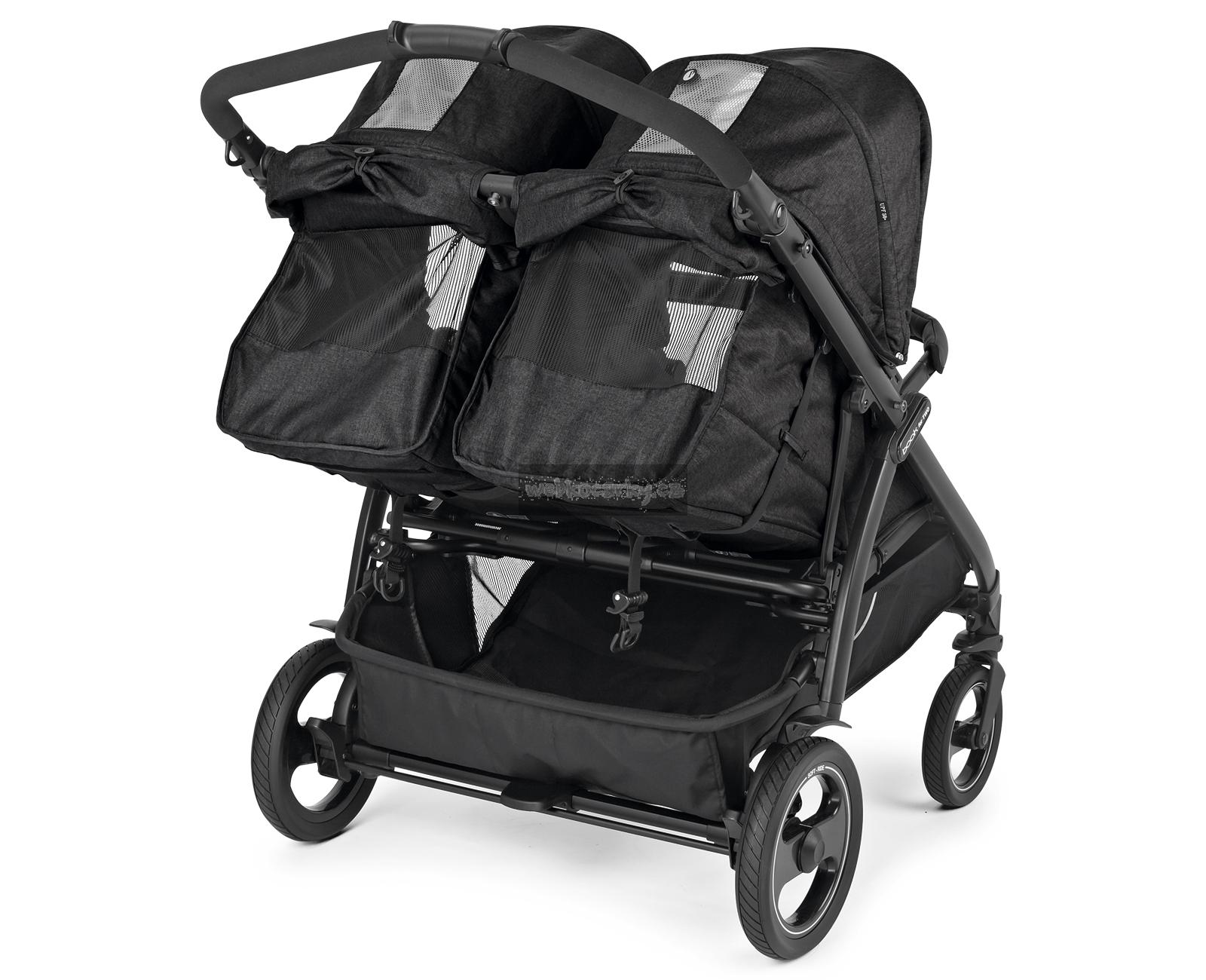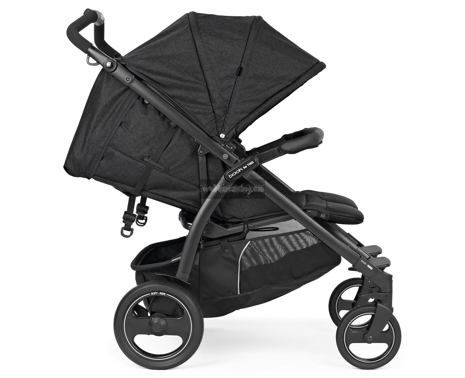 V Itálii vyráběný dvojčatový kočárek Book For Two vyčnívá z řady především díky svým vlastnostem a praktickým funkcím. Je navržen tak, aby dětem poskytoval maximální pohodlí, ale zároveň byl extrémně hbitý na každém povrchu. Je vhodný pro dvojčata nebo sourozence podobného věku již od narození (0-36 měsíců) a s šířkou pouhých 74 cm umožňuje jízdu i skrze nejužší uličky. Pro pohodlné a snadné ovládání lze rukojeť kočárku výškově přizpůsobit dle rodiče a kočárek lze zabrzdit pomocí centrální brzdy. Odpružená Soft Ride kola se vzorkem a 12 kuličkovými ložisky umožňují dokonalou ovladatelnost pouze jednou rukou. Sportovní sezení jsou vybavena samostatně polohovatelnými opěrkami zad a nohou, UPF 50+ stříškami a otevíracím předním madlem v ECO kůži. Pod kočárkem se nachází prostorný košík nejen na nákup a celý kočárek lze jednou rukou složit do kompaktních rozměrů, přičemž ve složeném stavu stojí kočárek samostatně.