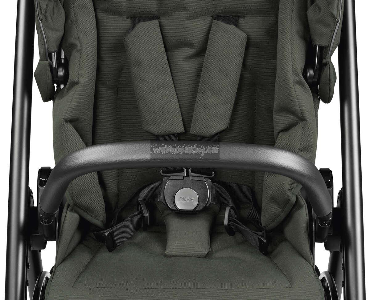 - Přední hrazdu lze otevřít pro nastupování a vystupování nebo ji zcela odejmout pro kojence.