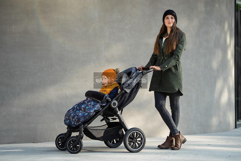 - Ve spodní části se zipy setkávají, jejich rozepnutím vznikne praktický otvor na nožičky děťátka. V zadní části je inteligentní prohnutá kapsa, která zabraňuje sklouznutí fusaka.