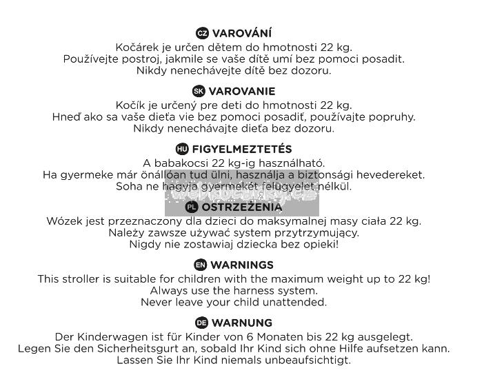 - maximální hmotnost dítěte v kočárku: 22 kg