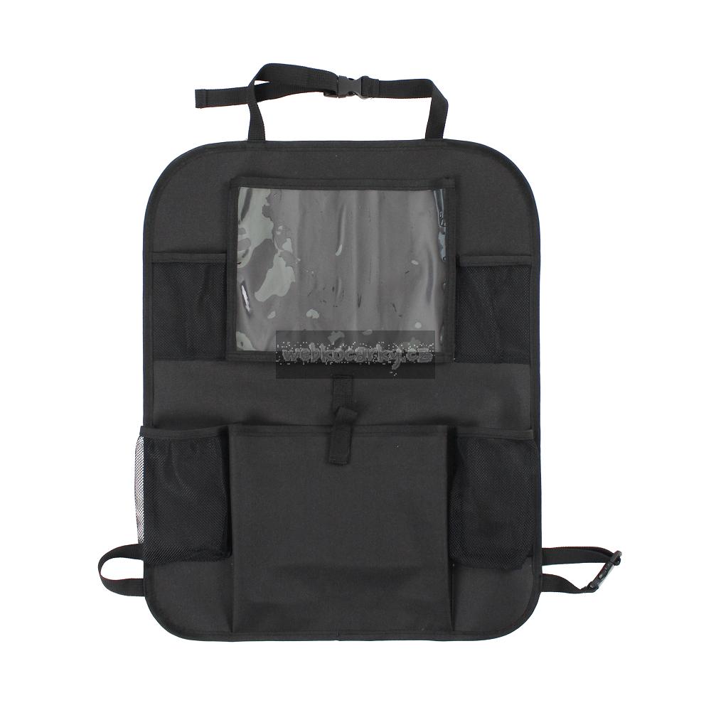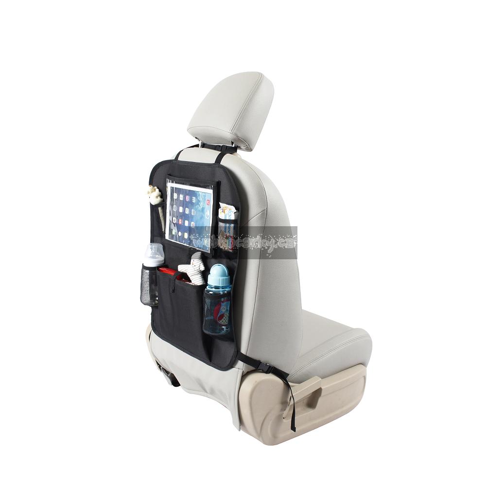 Díky univerzálnímu připevnění na sedátko je kompatibilní téměř s každým autem. Kromě kapsy na tablet organizér obsahuje 4 kapsy ze síťoviny a extra velkou centrální přihrádku. Hlubší spodní kapsy jsou vhodné pro umístění láhve s vodou, horní menší kapsy pro různé drobnosti. Do velké přihrádky se vejde několik hraček.