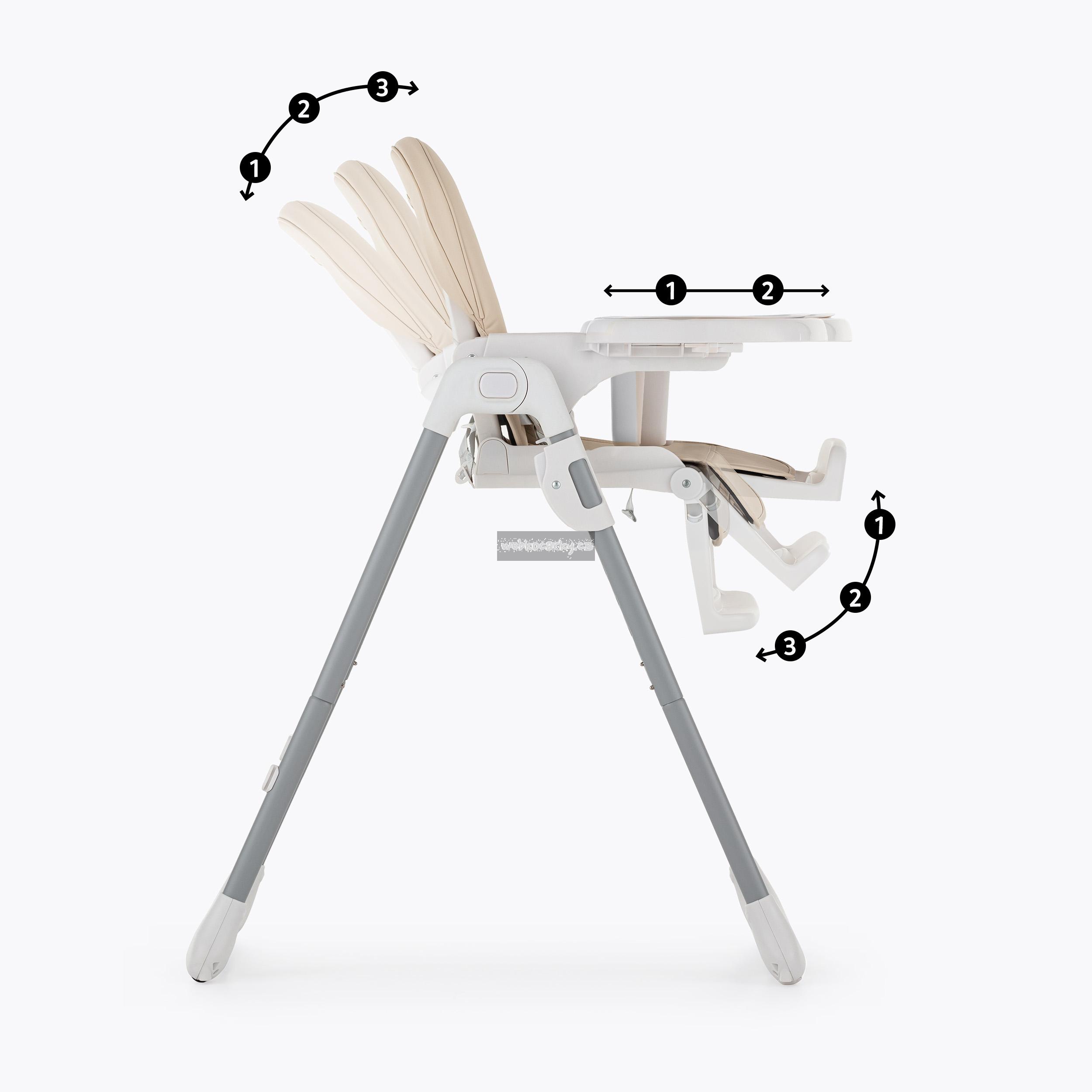 Péče o životní prostředí, kterou jsme při tvorbě této židle zohlednili, nezastínila nejdůležitější aspekty výrobku – byl totiž navržen tak, aby co nejbezpečněji zlepšil každodenní život děťátka i rodičů. Židle má všechny funkce, které usnadňují každodenní krmení: Lze ji snadno sundat a vyčistit, má 5-bodové bezpečnostní pásy, nastavitelnou opěrku zad, nastavitelnou opěrku nohou, nastavitelnou výšku, dvě polohy pro podnos s horní částí, kterou lze mýt v myčce nádobí. Stabilní konstrukce židle zajistí bezpečnost vašeho dítěte bez ohledu na to, jak je aktivní nebo pohyblivé. Vysoce kvalitní provedení, promyšlená konstrukce, moderní a originální design a kompaktní skládání jsou nadčasové vlastnosti, které zajistí pohodlí pro vaše dítě od okamžiku, kdy se naučí sedět.
