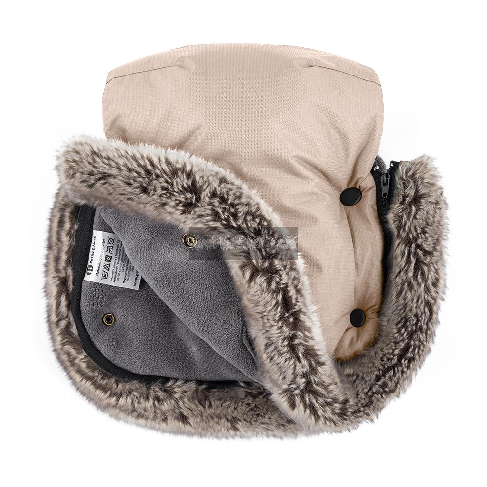 Kožešinové rukavice jsou ideálními společníky na zimní procházky, které zpříjemní i ty nejchladnější dny. Díky dvěma samostatným částem lze snadno připevnit na jakýkoli model kočárku, bez ohledu na to, zda se jedná o kočárek s pevnou rukojetí nebo golfový kočárek se samostatnými rukojeťmi. Kromě toho voděodolná úprava účinně chrání před sněhem a lehkým deštěm, zatímco teplá kožešinka poskytuje ochranu před mrazivým větrem.