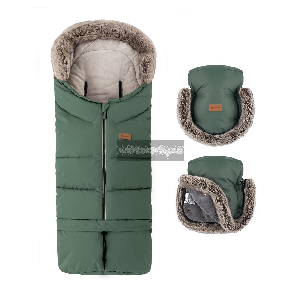 PETITE&MARS Set zimní fusak Arctic 4v1 + rukavice na kočárek Furry Veritable Khaki