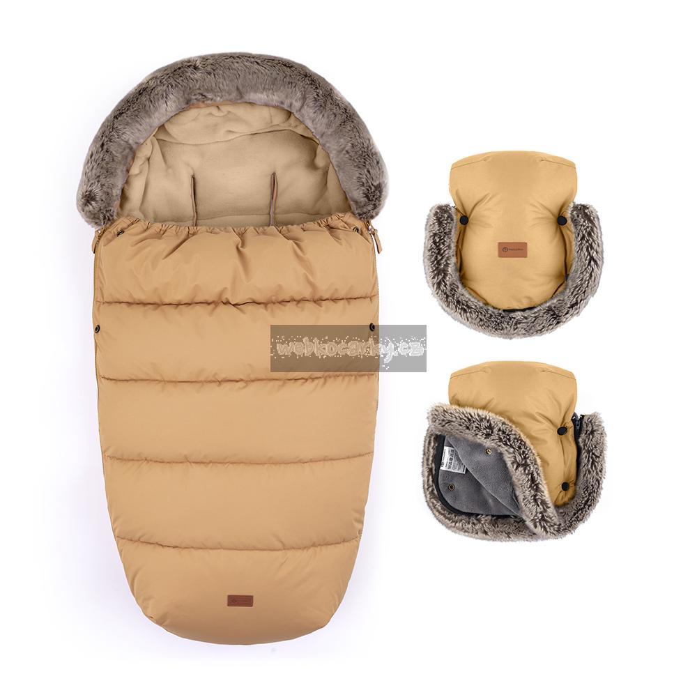 PETITE&MARS Set zimní fusak Comfy 4v1 + rukavice na kočárek Furry Elegant Caramel