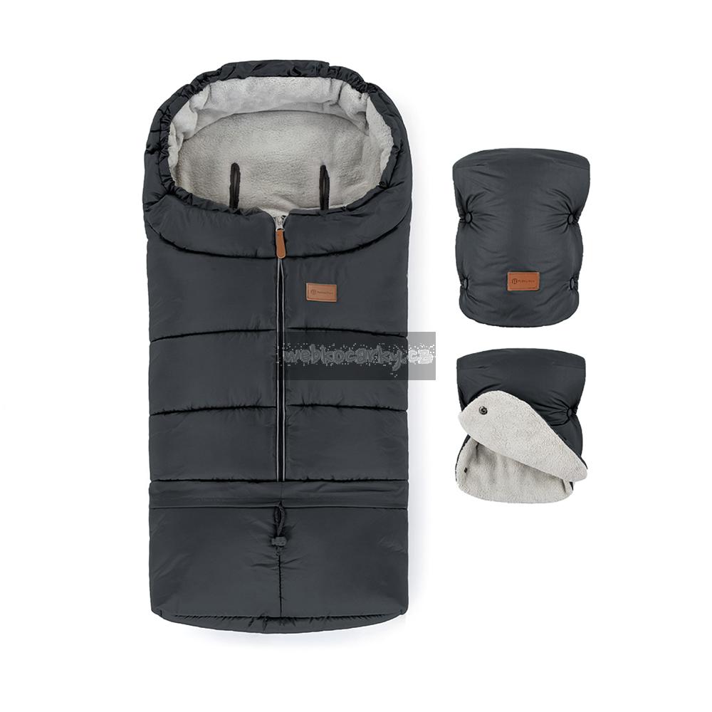 PETITE&MARS Set zimní fusak Jibot 3v1 + rukavice na kočárek Jasie Charcoal Grey