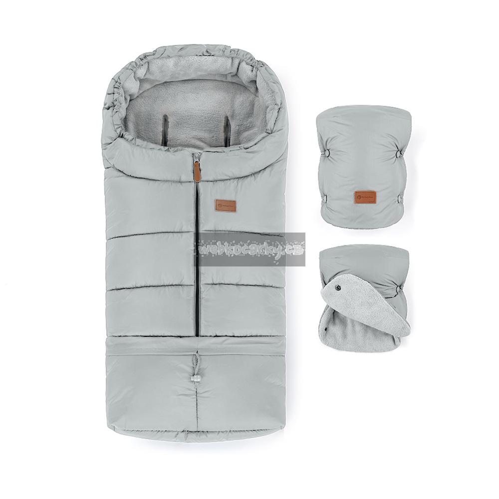 PETITE&MARS Set zimní fusak Jibot 3v1 + rukavice na kočárek Jasie Quiet Grey