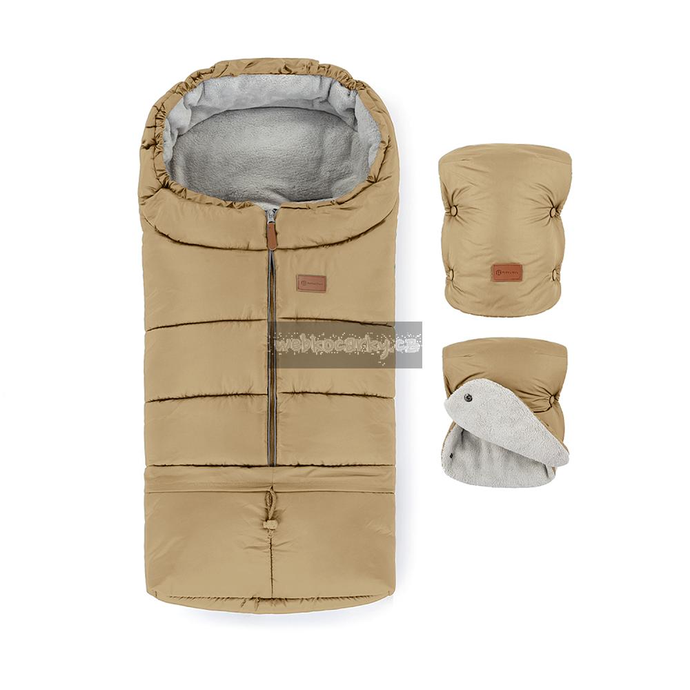 Komplet výbava na zimní kočárkování. Hřejivý prodloužitelný fusak Jibot 3v1 pro miminko a hřejivé rukavice Jasie na kočárek pro maminku. Vše krásně sladěné v jednotném odstínu.