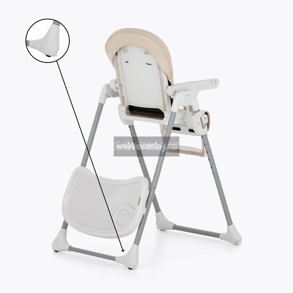Péče o životní prostředí, kterou jsme při tvorbě této židle zohlednili, nezastínila nejdůležitější aspekty výrobku – byl totiž navržen tak, aby co nejbezpečněji zlepšil každodenní život děťátka i rodičů. Židle má všechny funkce, které usnadňují každodenní krmení: lze ji snadno sundat a vyčistit, má 5-bodové bezpečnostní pásy, nastavitelnou opěrku zad, nastavitelnou opěrku nohou, nastavitelnou výšku, dvě polohy pro podnos s horní částí, kterou lze mýt v myčce nádobí. Stabilní konstrukce židle zajistí bezpečnost vašeho dítěte bez ohledu na to, jak je aktivní nebo pohyblivé. Vysoce kvalitní provedení, promyšlená konstrukce, moderní a originální design a kompaktní skládání jsou nadčasové vlastnosti, které zajistí pohodlí pro vaše dítě od okamžiku, kdy se naučí sedět.