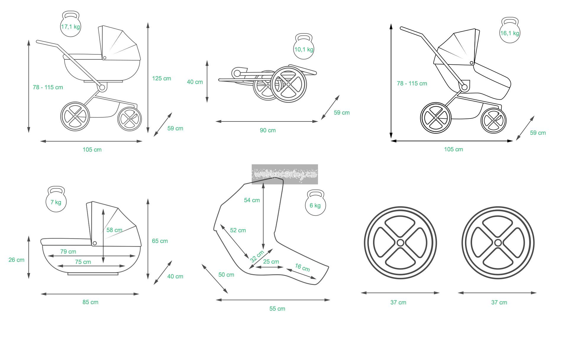 • Hmotnost kočárku s hlubokou korbičkou: 17,1 kg