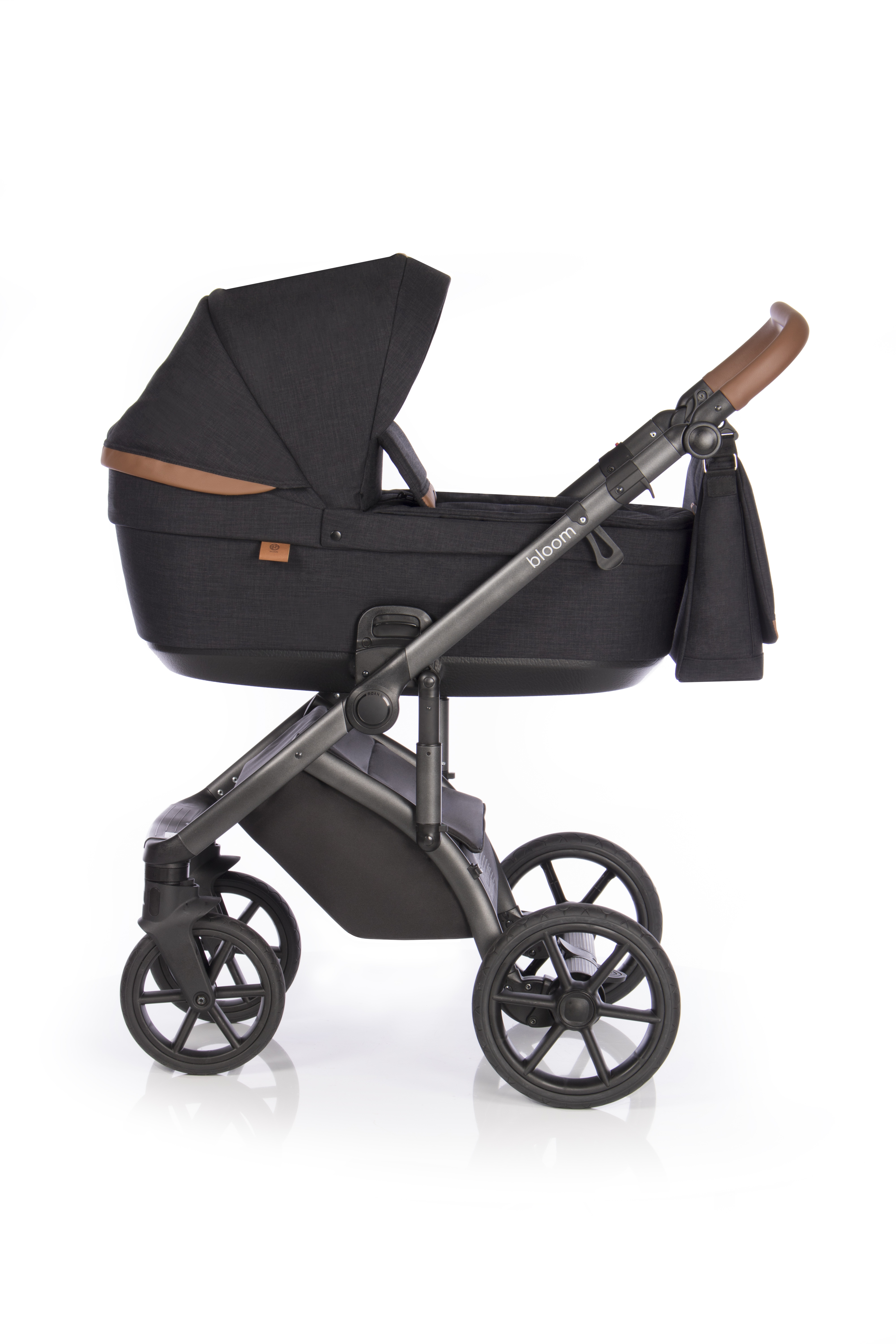 - rukojeť kočárku z eko kůže je výškově nastavitelná pomocí kloubového mechanismu