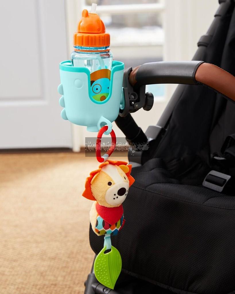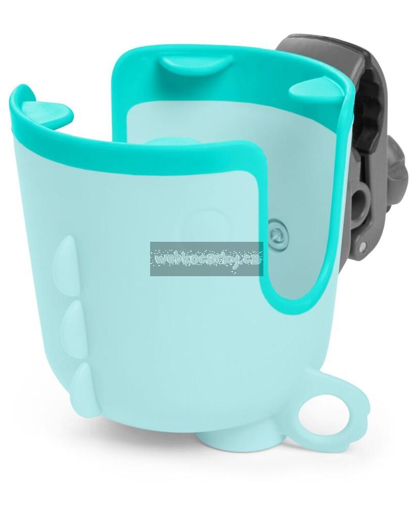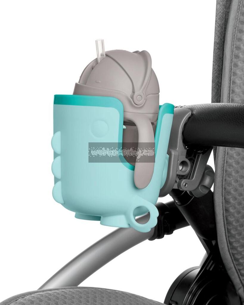 Díky praktickému držáku na nápoje budete mít sklenici, láhev s brčkem a nebo i kávu vždy na dosah. Jedinečný design, který je vhodný i pro hrníčky s držadly. Univerzální úchyt držáku se jednoduše připevní a přizpůsobí většině typů kočárků, kol či nákupních vozíků. Obsahuje také háčky na hračky, které zabaví malé dětičky během procházky.