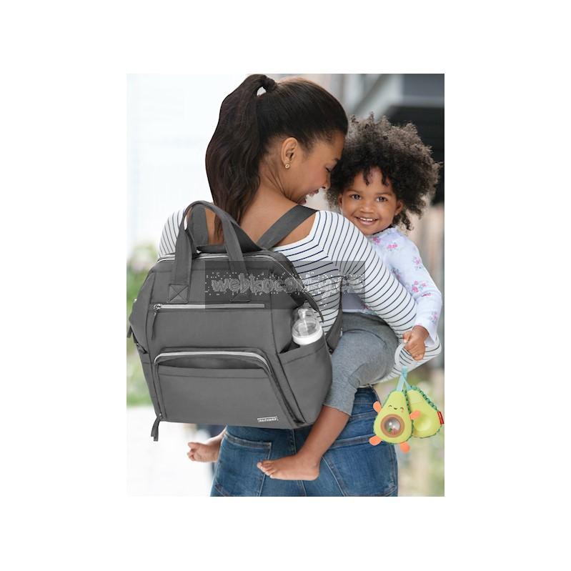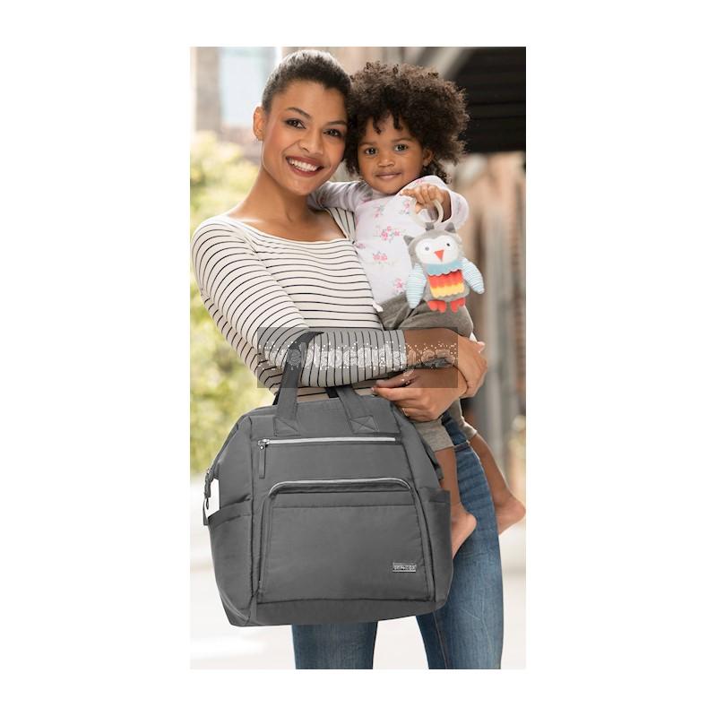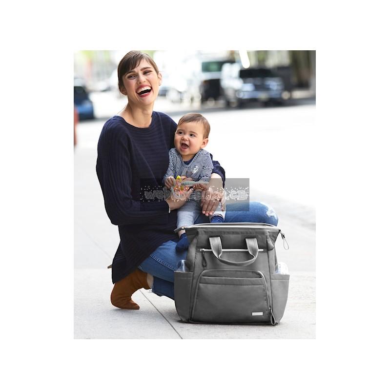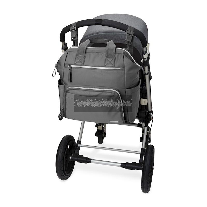 Taška nabízí velkou hlavní přihrádku s bezpečným zapínáním na zip a množství kapes pro věci jako je telefon, láhev na vodu a klíče. Snadno uchopitelné dvojité horní rukojeti a nastavitelné popruhy, které umožní tašku použít jako batoh, zajistí pro maminky volné ruky, což je k nezaplacení.