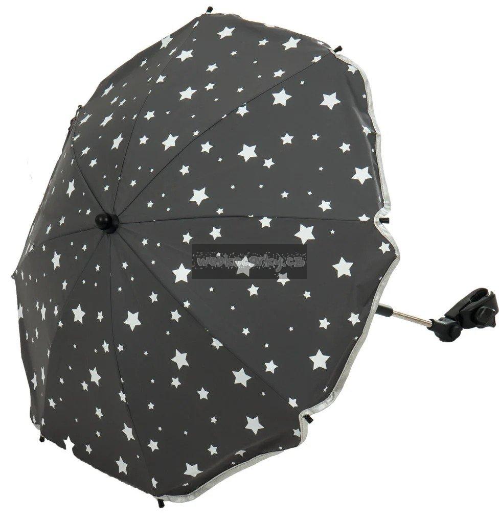 slnečník do kočiara, poskytujúci nevyhnutnú ochranu pred slnkom, vetrom či dažďom, vyhovujúci požiadavkám európskych certifikátov, vysokokvalitný materiál poťahovej látky, pevná konštrukcia, vybavený univerzálnym držiakom - vhodný pre rôzne typy kočiarov, tradičný spôsob skladania, prstenec, uľahčujúci zloženie, možnosť oddelenia tieniacej časti slnečníka od držiaka. Priemer tieniacej časti slnečníka: 70 cm