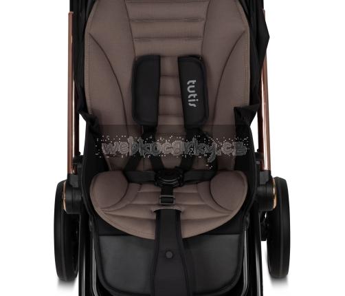 Tutis Gio se vyznačuje výjimečným komfortem pro dítě. Ergonomické sedátko je extrémně měkké a pohodlné pro dítě. Prostorná sedačka poskytuje potřebnou oporu dětskému tělu a dodatečně nastavitelná stříška poskytne ochranu před škodlivými UV paprsky v horkých dnech a v chladnějších dnech zase před větrem. Jediný kočárek, který byl navržen s ohledem na potřeby dítěte i rodiče. Používání kočárku je mimořádně pohodlné a tím i příjemné. Vyrobeno z nejkvalitnějších materiálů dostupných na trhu, které zajišťují dlouhodobou životnost.