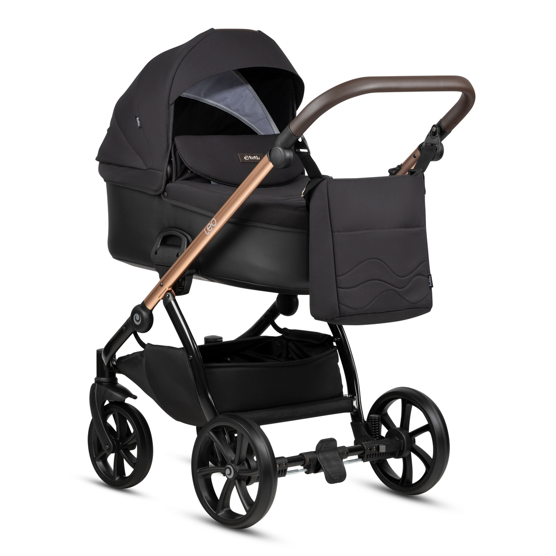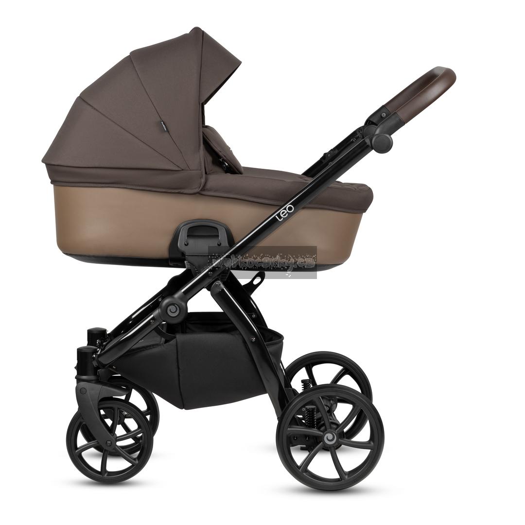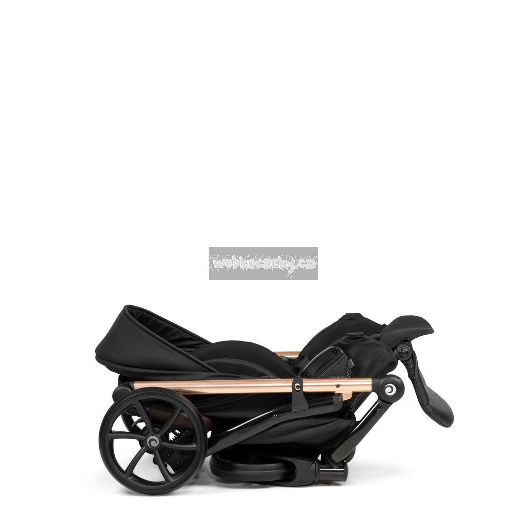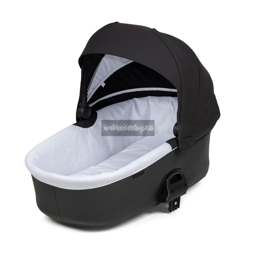 Matný hliníkový podvozek a vysoce kvalitní textilie s detaily z umělé kůže dotváří nadčasový vzhled kočárku.