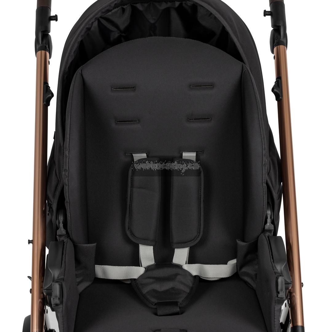 Pohodlný a mimořádně prostorný sedák s nastavitelnou extra velkou stříškou je dokonale zpracován do nejmenších detailů. Sedák může být umístěn po i proti směru jízdy. Pro pohodlné a zdravé spaní dítěte je možné sedák sklopit do rovné polohy. 5-bodové bezpečnostní pásy s nastavitelnou výškou a madlo před dítětem jsou zárukou bezpečného sezení dítěte.
