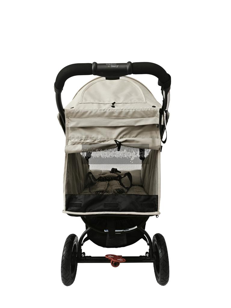 - Zadní část opěrky obsahuje dvě praktické kapsy, tuto část lze navíc srolovat, čímž se odkryje síťované okénko, díky kterému může vzduch v kočárku cirkulovat bez omezení iv teplejších dnech.