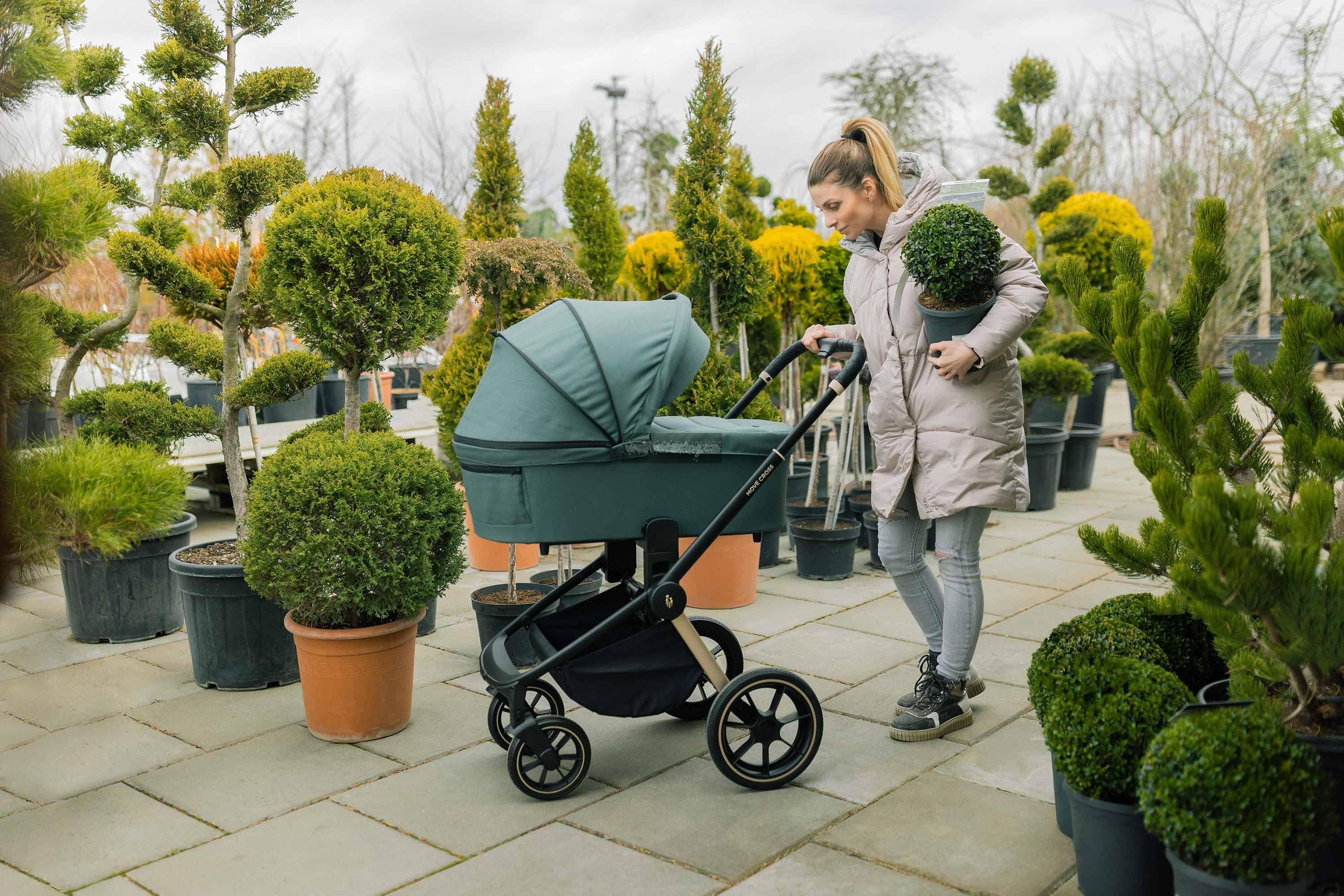 Korba Move XL je extra dlouhá, pohodlně do ní vejdou i větší miminka se zimním fusakem. Díky větracímu okénku na přední straně korby a odvětrané stříšce uvidí z polohy na bříšku malí objevitelé celý svět.