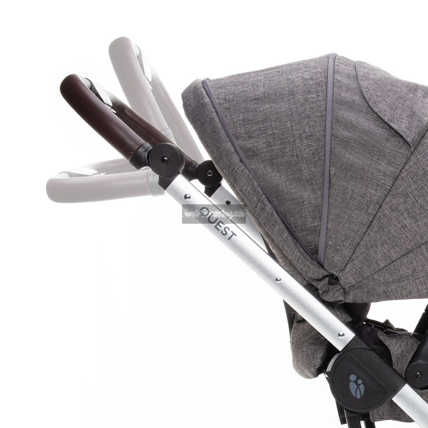 rukojeť kočárku i bezpečnostní madlo před dítětem je potaženo ekokůží